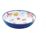 Assiette creuse fond marin. Elle est en mélamine qualité supérieure. Les poissons colorés nagent entre le corail et les algues.