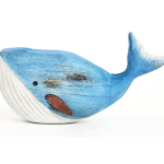 Baleine bleue. Une jolie petite baleine en bois, à poseer pour compléter une décoration marine. La nageoire sur le côté est en métal, aspect rouille.