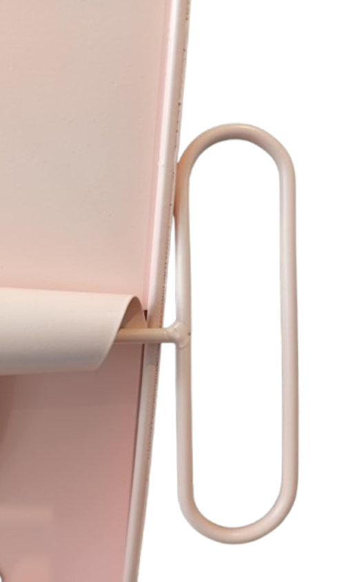Horloge poisson rose. Elle est en métal et ressemble aux boîtes de sardine d’autrefois qui s’ouvraient en tournant la clé sur le côté. Le poisson rayé turquoise et blanc sert de balancier. Une horloge très gaie et originale.